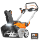 Ширина уборки составляет 510 мм, а высота – 280 мм, что позволяет быстро очищать дорожки и парковки. Дальность выброса снега достигает 10 метров, а поворот трубы выброса на 180 градусов позволяет направлять снег в нужную сторону. Светодиодная фара обеспечивает хорошую видимость при работе в темное время суток. Система привода Grab'n Go облегчает перемещение снегоуборщика, а металлический шнек с резиновым скребком гарантирует эффективную и бережную уборку снега, не повреждая поверхность. Снегоуборщик работает от двух аккумуляторов 21В (42В). Обороты двигателя составляют 2000 об/мин. Он станет отличным помощником в борьбе со снегом, сочетая в себе мощность, удобство и надежность.