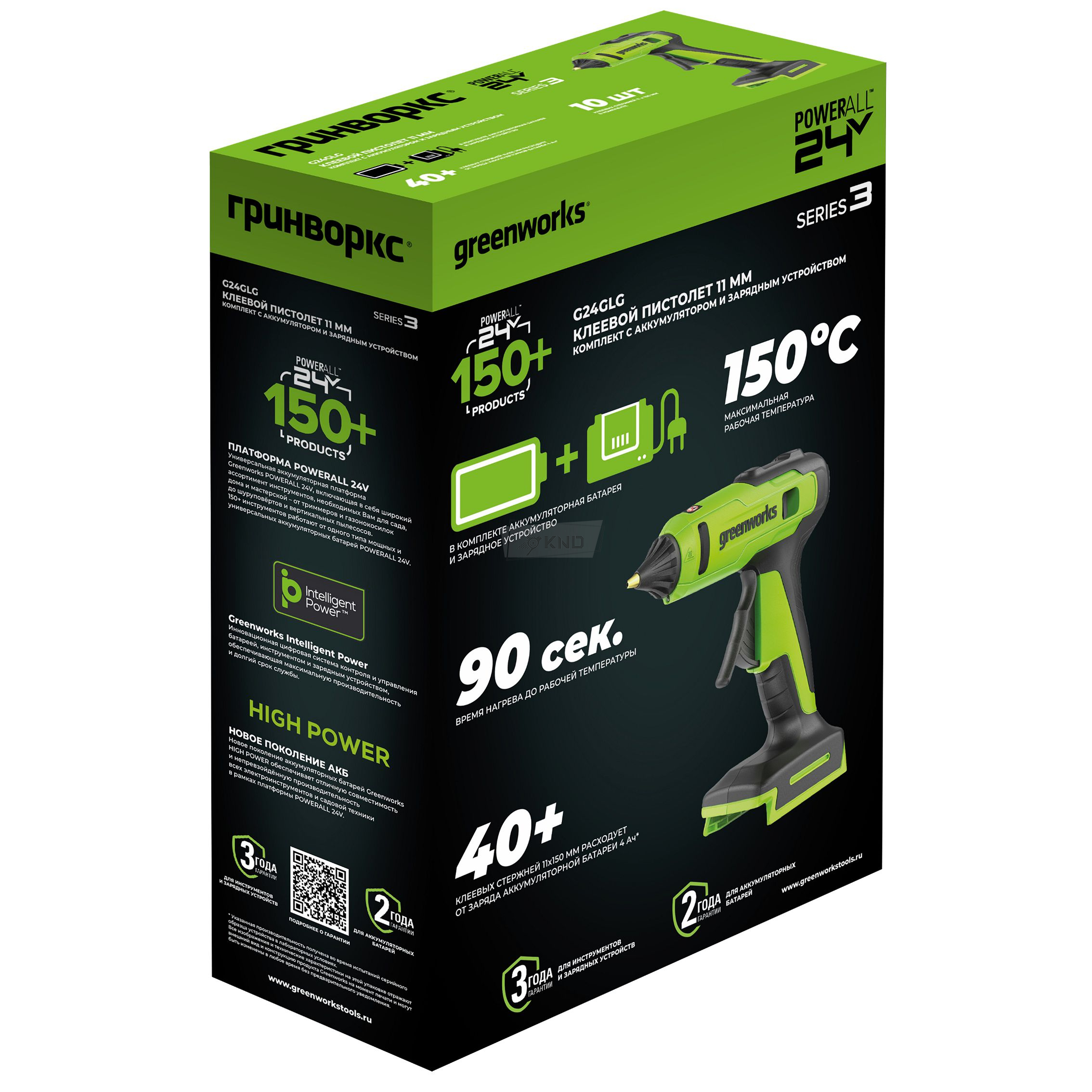Пистолет клеевой аккумуляторный Greenworks G24GLG с АКБ 2 Ач и ЗУ
